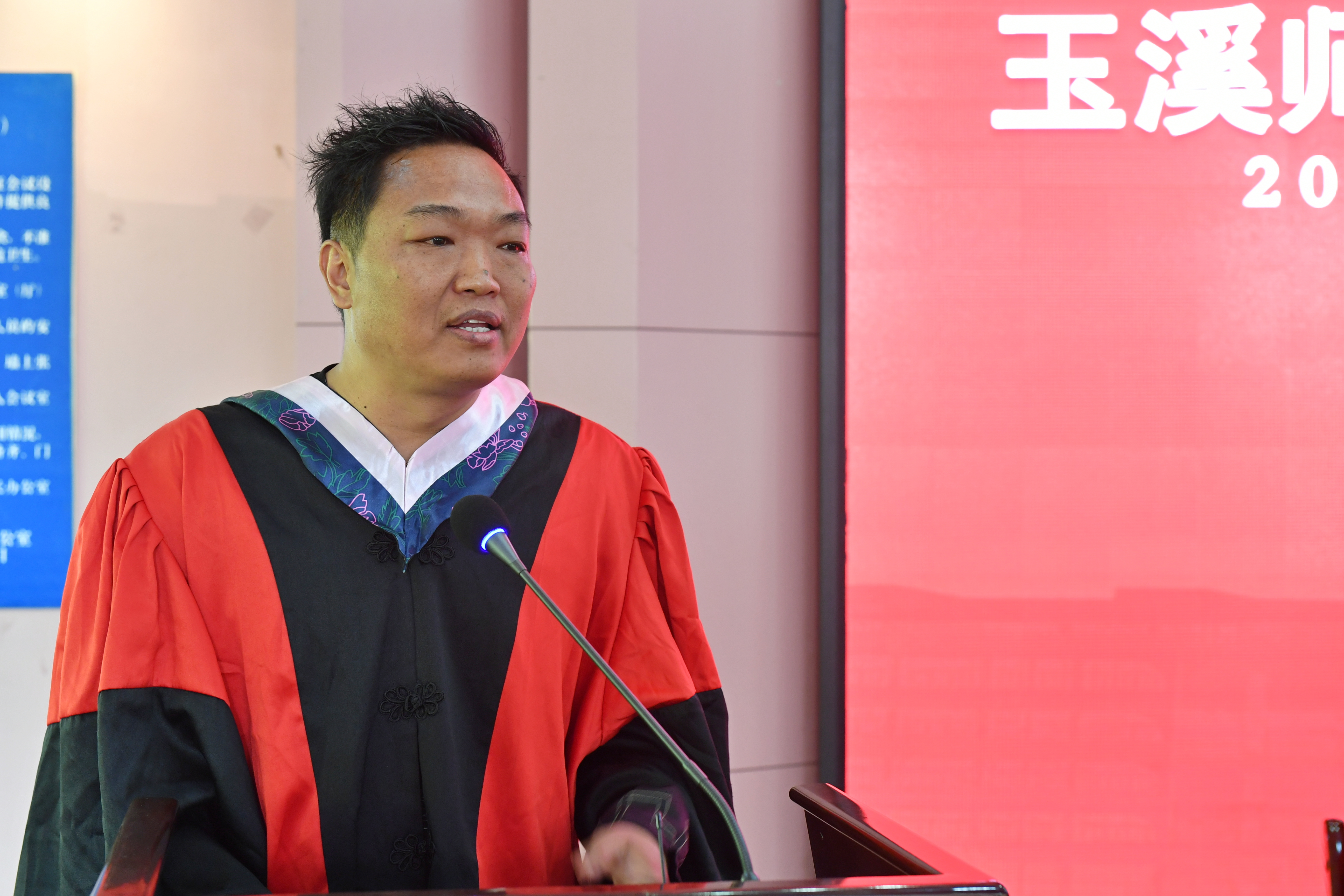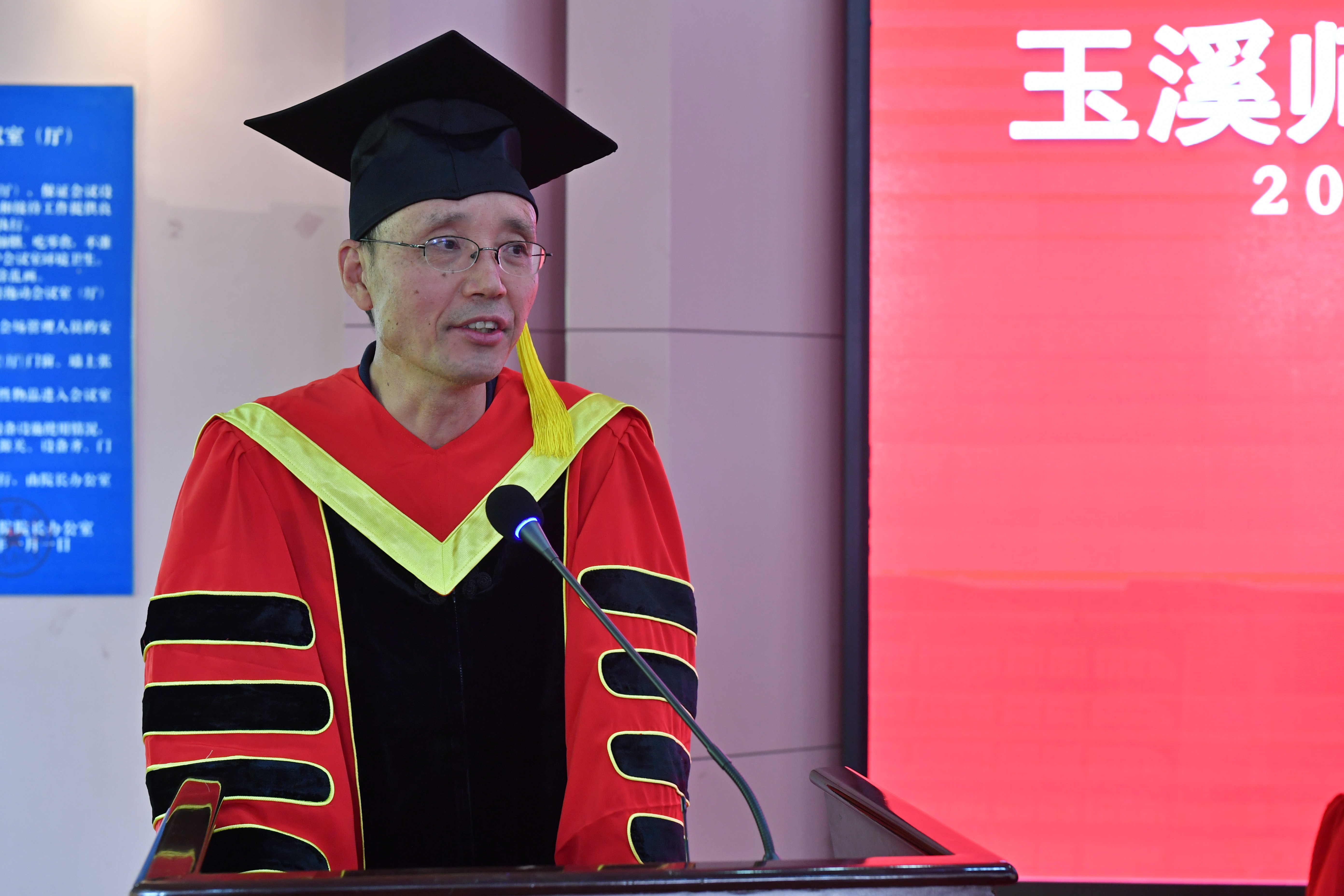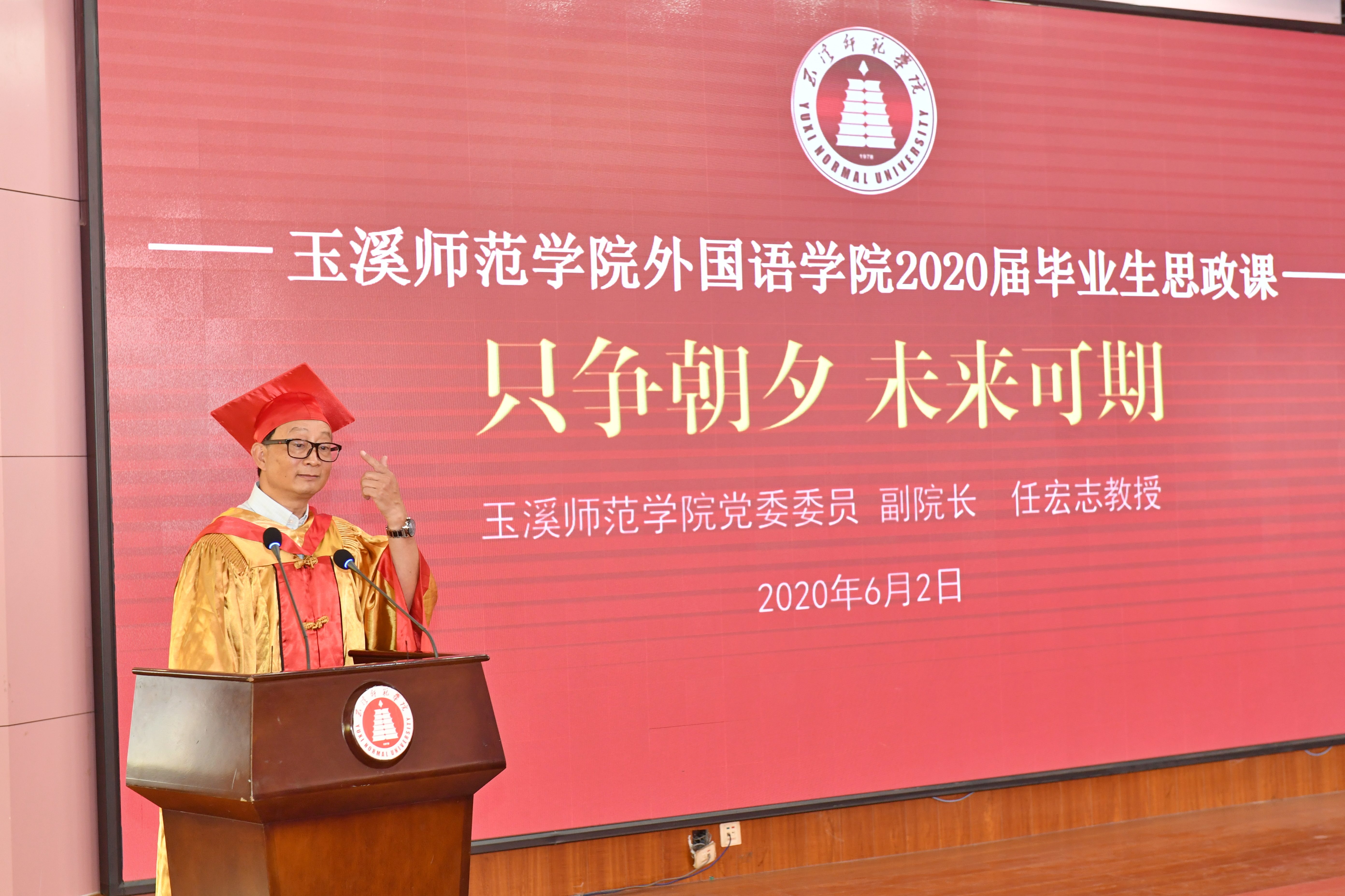 6月2日下午,外国语学院在科学讲堂隆重举行2020届毕业生毕业典礼暨学位授予仪式,玉溪师范学院党委委员、副院长任宏志、学工部部长张春霞、外国语学院党委书记郭跃东、院长朱黎勇、院党委副书记褚小波、副院长周朝润、院长助理张睿及部分外国语学院教师、2020届毕业生参加了毕业典礼,典礼由外国语学院党委副书记褚小波主持。