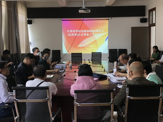 2021年4月19日下午4点,外国语学院在第2教学楼316会议室召开师范专业(英语)迎接2022年认证准备工作启动会。外国语学院从事英语相关工作的全体教师参加了会议。会议由朱黎勇院长主持。