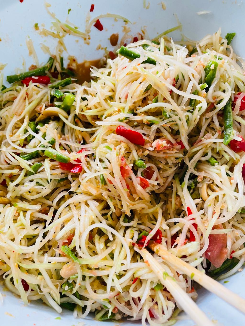 制作泰国美食的同学在薛青老师的指导下,完成了泰国传统小吃:凉拌木瓜、凉拌方便面、凉拌鸡蛋等美食的制作。制作缅甸美食的同学在缅教的指导下,完成了缅甸美食:奶茶、椰汁面条等美食的制作。