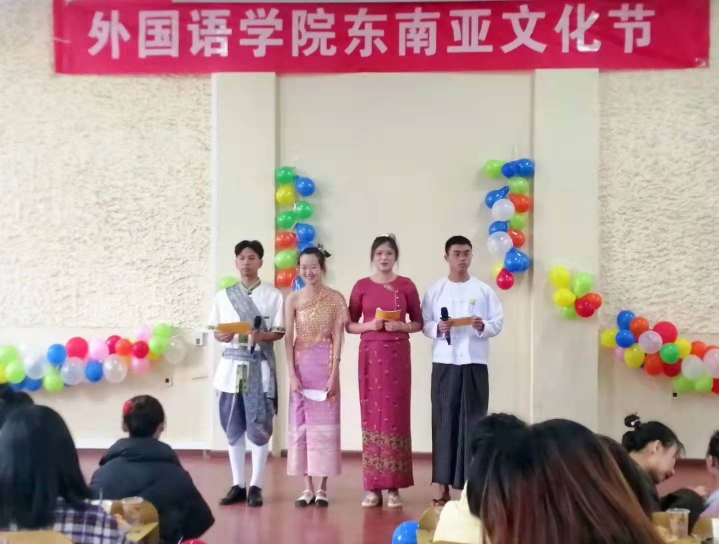 为丰富学生的课余活动,拓展小语种专业学生的文化认知,激发小语种专业学生的学习热情,外国语学院小语种教研室依托小语种专业教学改革项目,由小语种专业分管领导以及3位教研室主任、缅甸外教Myint Myint Aye老师策划并组织泰语、缅甸语专业全体在校学生参与实施,以第二课堂文化活动实践形式于2021年12月12日14:30-17:00,在外国语学院举办了东南亚文化节。