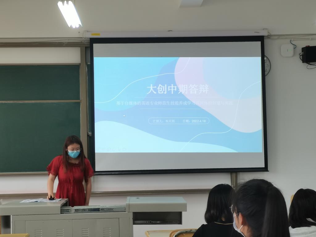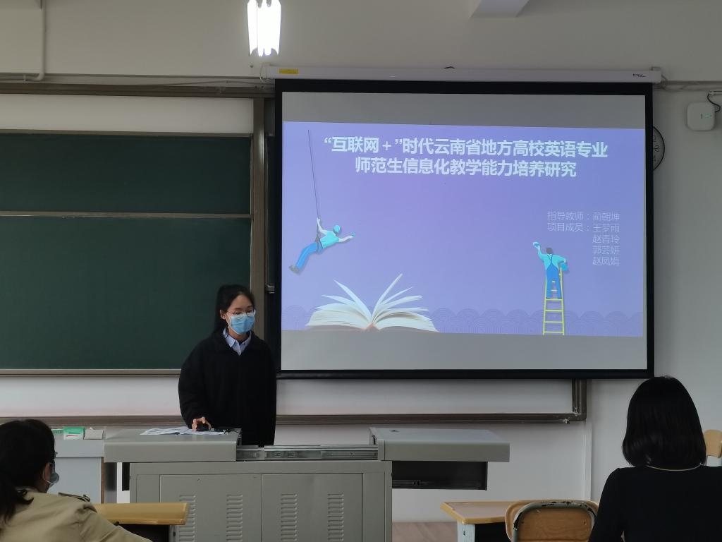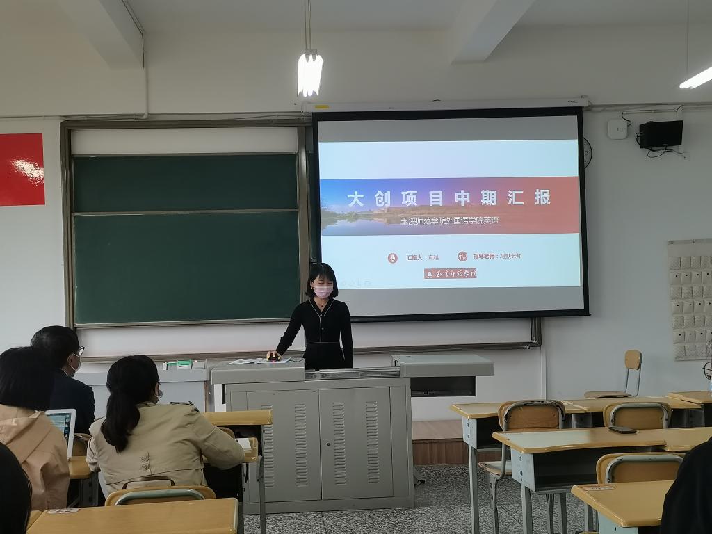 2022年4月18日,玉溪师范学院外国语学院2021年大学生创新创业项目中期检查答辩在13教205召开,7个项目团队负责人、成员以及四位评审老师参加了此次答辩。四位评审老师分别是:何申英、石常艳、莫晓艳、刘云。本次答辩旨在了解项目进展情况,对项目开展存在的问题予以指导,促进外国语学院创新创业项目的发展。