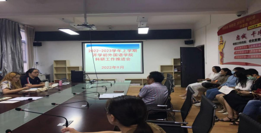 2022年9月19日下午4点,外国语学院召开了2022—2023学年上学期开学初科研工作推进会。