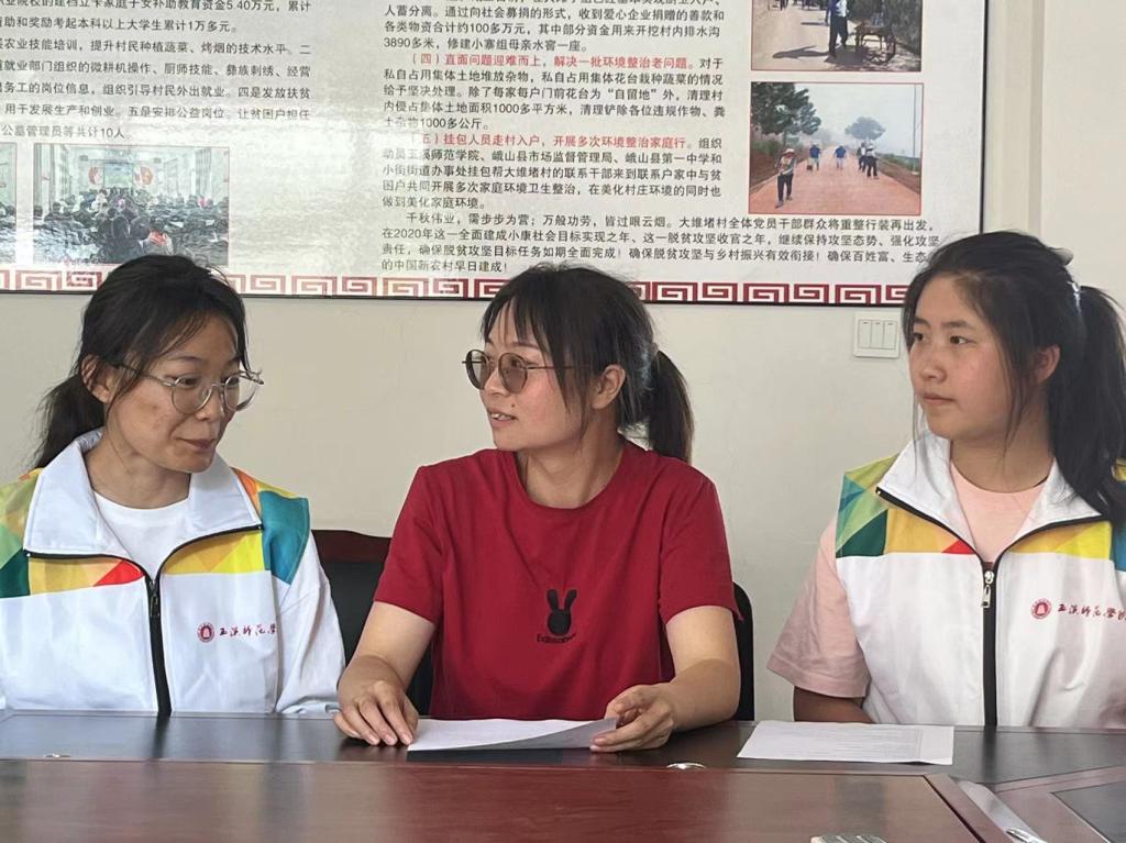 指导教师谢春丽代表实践团感谢大维堵村委会的支持和帮助,对实践团此行的团队成员、实践内容、预期目标等进行了一一介绍。她表示:希望同学们学思践悟知行合一,锻炼自身师范生技能的同时激发孩子们的求知欲;也希望同学们发扬能吃苦、肯奋斗的精神,只争朝夕,自找苦吃。