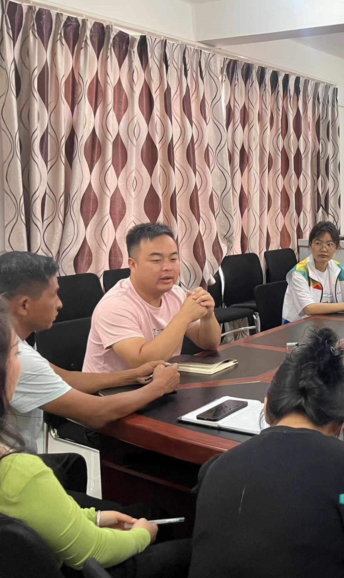 大维堵村委会和“希望绣球花”实践团召开了座谈会。会上,大维堵村党支部副书记童飞对实践团的到来表示热烈的欢迎,向实践团成员热情介绍了大维堵村的主要情况,协调并解决了实践团的食宿问题并提前对村中的留守儿童做好了前期动员宣传工作。随后,他带领村委会的工作人员和实践团进行了工作交流,提出对实践团的期望并强调:大维堵村委会对教育十分重视,乡村振兴需要人才,教育脱贫了才能带动乡村振兴,再次欢迎、感谢实践团的到来。