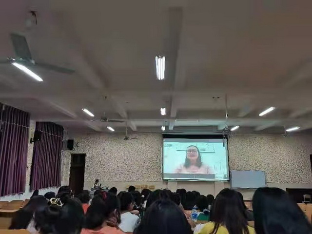 然后,石博士分享了往届优秀学长学姐们精心准备的视频,鼓励大家积极参与第二课堂活动,她强调第二课堂对语言学习者来说,是难得的有利环境,第二课堂已成为大学生非智力因素和综合素质能力提高的主要渠道,将直接影响到学生以后的职业选择、职场竞争及人生走向等。
