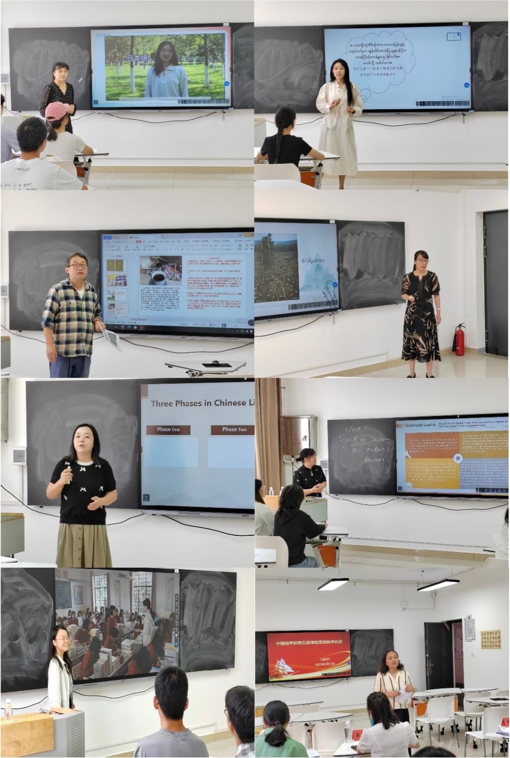 根据《玉溪师范学院第五届课程思政教学比赛实施方案》相关要求,外国语学院积极动员教师参与课程思政建设,组织7门优秀课程参与院内选拔赛。2025年5月12日14:30,学院第五届课程思政教学比赛在2教401教室举行。云南师范大学外国语学院院长黄瑛、副院长陈萍、教学法骨干教师赵云芳受邀作为大赛评委莅临指导,与我院往年获奖教师一起组成了评委团。