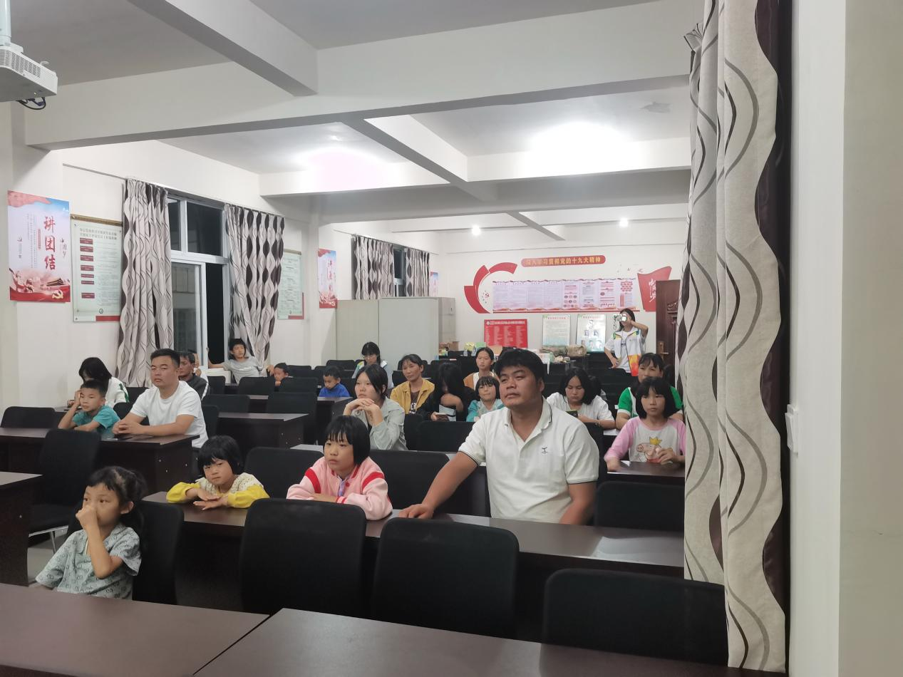 7月18日晚上通过村委会的宣传和动员,实践团在村委会开展了与家长、孩子互动交流会。首先,让本次参与爱心辅导的孩子们展示了实践团辅导英语学习的效果;随后,实践团的志愿者们结合自身实际情况分享学习英语的经验和心得,阐述英语学科的重要性,并分享了学习英语的方法和建议。