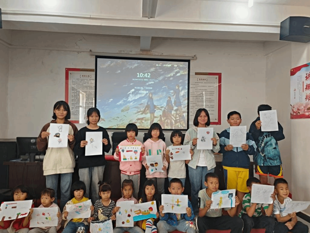 实践团的志愿者们组织了趣味性十足的简笔画课程和课堂上现学现展示,同时也让孩子们了解到兴趣和学习密不可分。