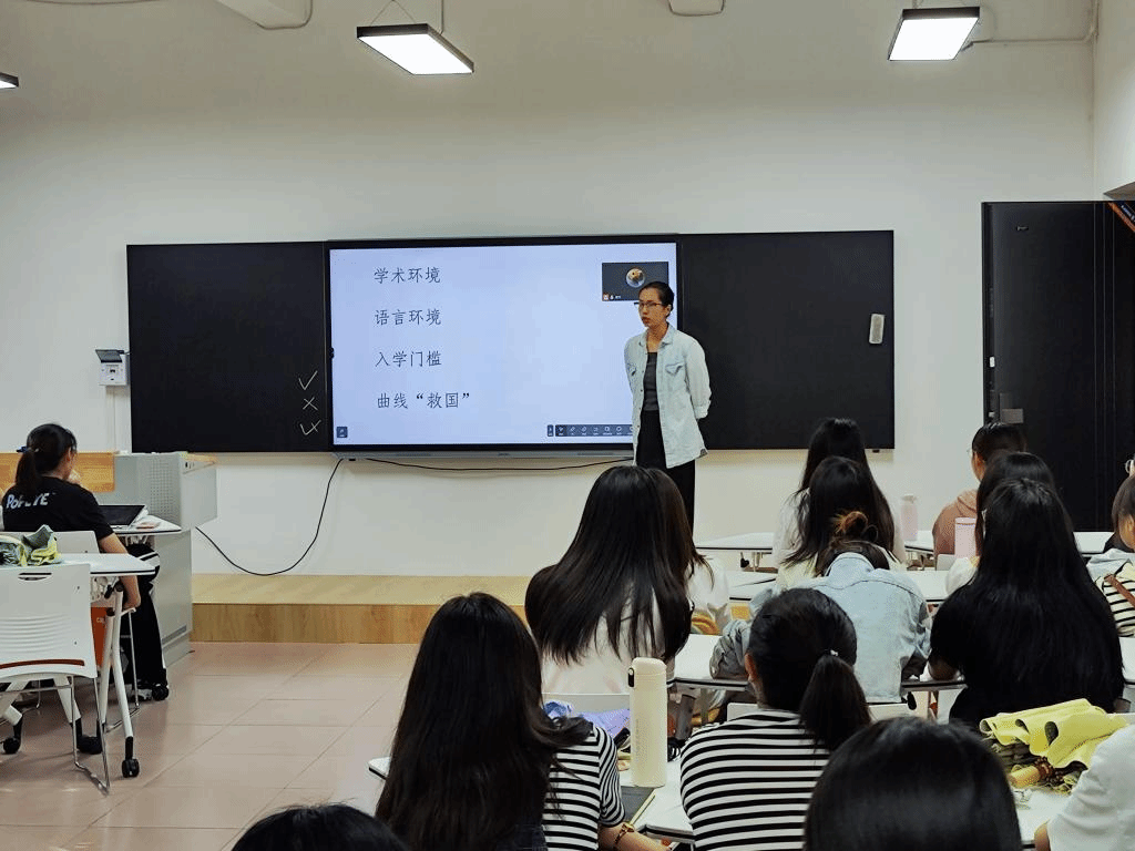 杨梅副书记结合外国语学院近年来成功升学的毕业生案例,详细分析了外语类人才的职业发展形势以及考研的必要性,鼓励同学们树立考研目标和专业方向,科学规划考研路径,笃定信念、踏实备考。辅导员马继彬老师结合自己考研读研的实战经验,对考研前应做的各项准备工作以及如何进行心理调适等与学生进行交流。