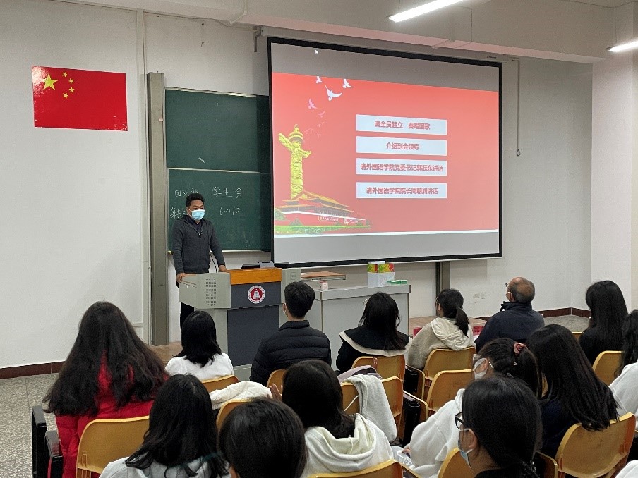 2022年4月1日18:30,外国语学院于14教105召开第八届全委(扩大)会议。本次大会外国语学院党委书记郭跃东、院长周朝润、团委书记谢春丽、团委学生会全体成员及各班团员代表均按时到场。
