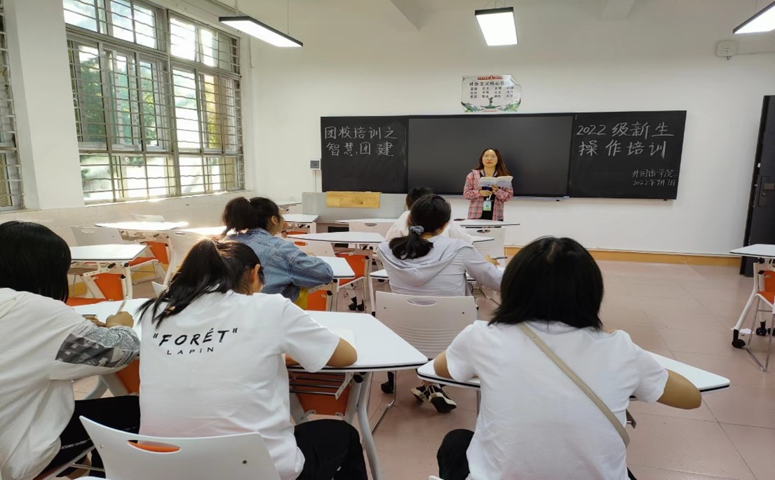 为帮助外国语学院2022级团支书熟悉智慧团建操作流程,配合好学院完成工作。外国语学院团委副书记周宗芳学姐,李佳娸学姐于2022年9月8日18时在二教104组织开展了“团校培训之2022级新生”智慧团建操作培训活动。2022级所有团支书均参加。