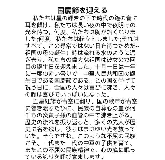 国庆节,是抒发爱国情怀、祝福祖国繁荣昌盛极具意义的时间节点。国家设立法定节假日,也是希望民众能够了解和追忆国家的历史,缅怀革命先驱,对民族复兴、国家兴盛有所希冀。国庆节期间,党和国家领导人为革命先烈献花,传达的也是这样一种与节日气氛契合的缅怀和祝愿。国庆节到来之际,本社团面向全校师生举办迎国庆外文写作比赛。具体事宜如下。