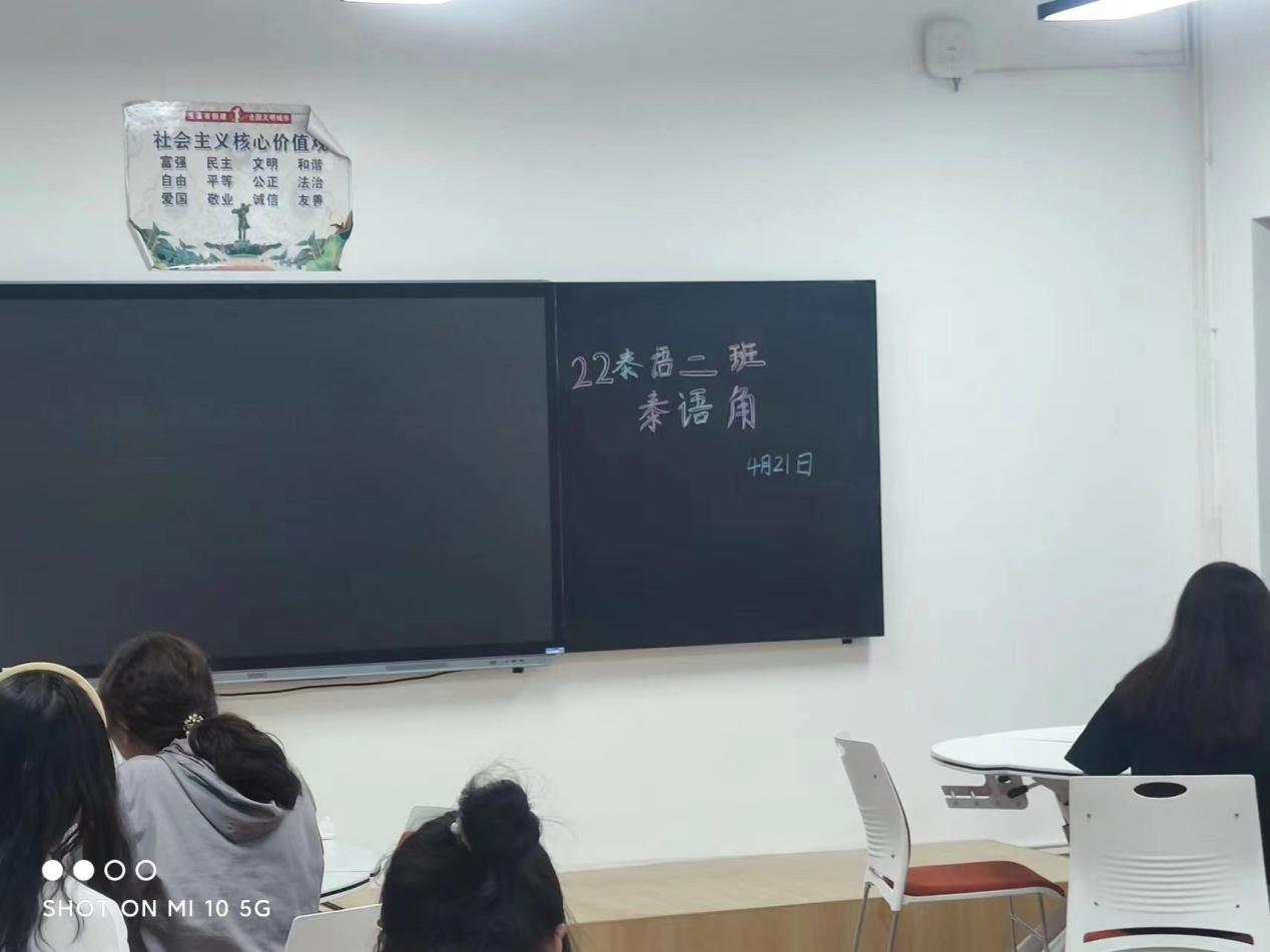 22级泰语2班于2023年4月21日星期五晚上19:00在二教104教室举办了以 “学习与交流,大声说泰语”为主题的泰语角活动,22级泰语2班全体同学参加了本次活动。