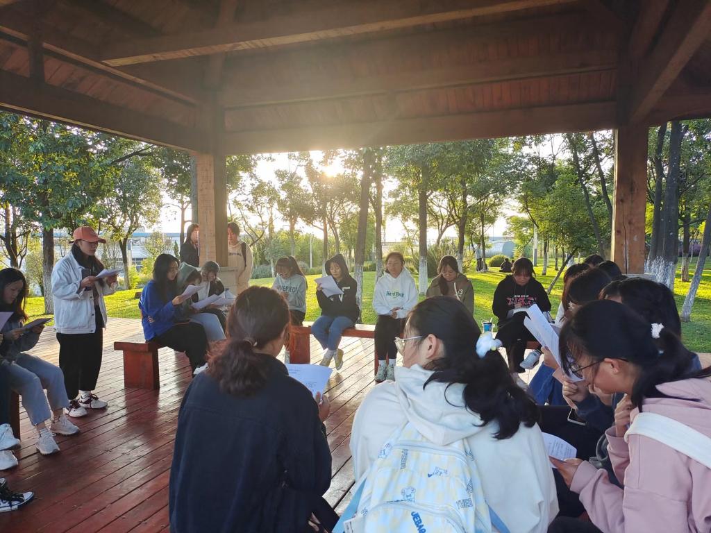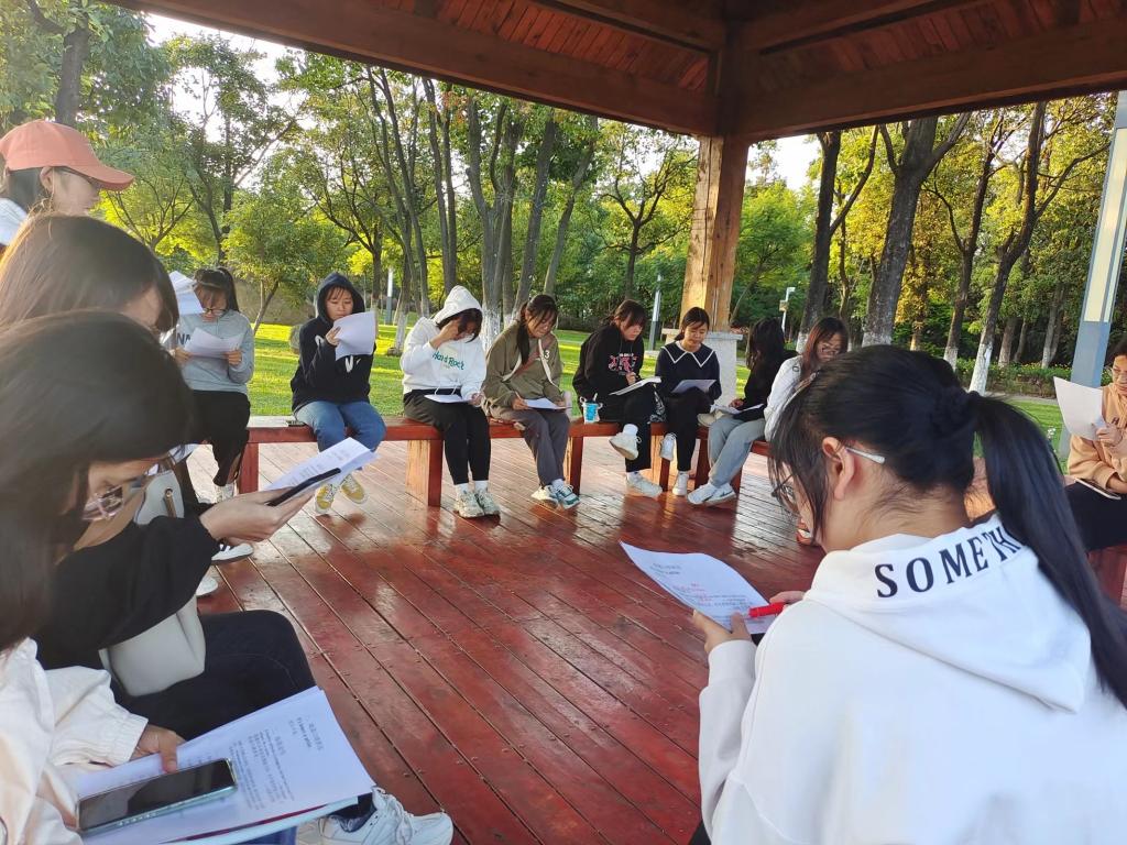 在悠悠湖畔的古朴亭中,同学们在夕阳中诵读英语,不断完善自我。通过特色英语角活动,同学们能够不断地提高英语水平,结交朋友,相互交流,相互学习,使得英语学习不再枯燥无味,从而使学生全面发展,营造良好的英语学习氛围,为四六级考试打下良好的备战基础。