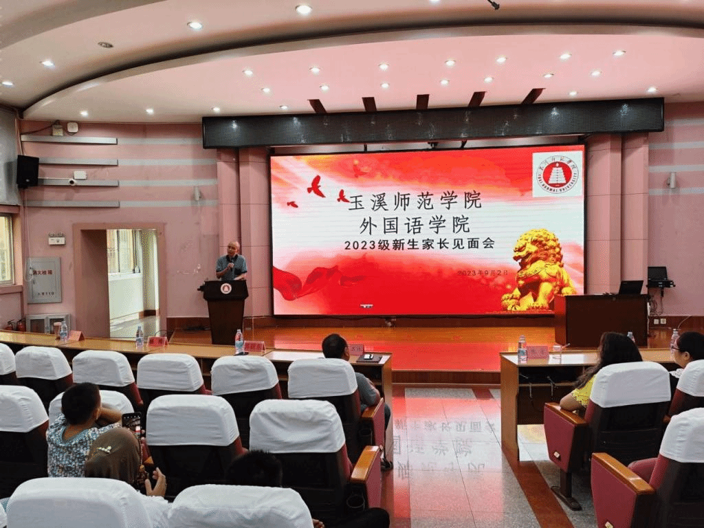 下午15点整,外国语学院在科学讲堂举行了新生家长见面会,外国语学院党政领导班子与新生家长均积极参与。会上,贾正林院长和郭跃东书记对家长们和同学们选择外国语学院表示热烈的感谢及祝贺。贾院长从学院发展历史、师资队伍、专业发展特色、就业等几个方面为家长们介绍,深入浅出地让家长们更为了解学院和专业。最后,学院几位领导、老师与在场家长进行交流互动,就家长提出的学科专业、学生管理、学生培养等方面的问题进行了详细解答。