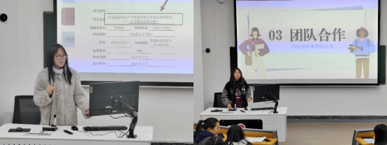 在经验分享环节,2022 级马克思主义学院的李婉瑜、刘瑞同学结合自身参赛经验,从选题、指导老师选择、团队合作、赛程安排四个环节入手,为同学们分享参赛经验。李婉瑜同学针对文本撰写与答辩技巧提出建议,强调学术规范性与社会价值的双重重要性。刘瑞同学特别指出,在团队协作中需注重专业互补,通过合理分工提升效率,并悉心指导团队成员在备赛过程中要保持积极的心态,勇于面对挑战,不断优化项目方案。同时,要善于借助学校和学院提供的资源,积极寻求指导教师的帮助。这些经验分享让在场的同学们深受启发,也增强了他们参赛的信心。