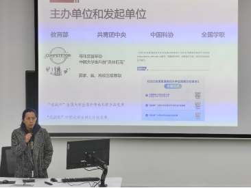 会议伊始,马继彬老师致辞。她强调,“挑战杯”作为全国性顶尖赛事,是培养学生创新精神与实践能力的重要平台。她鼓励同学们以赛促学,将专业知识与社会需求相结合,在实践中锤炼本领。