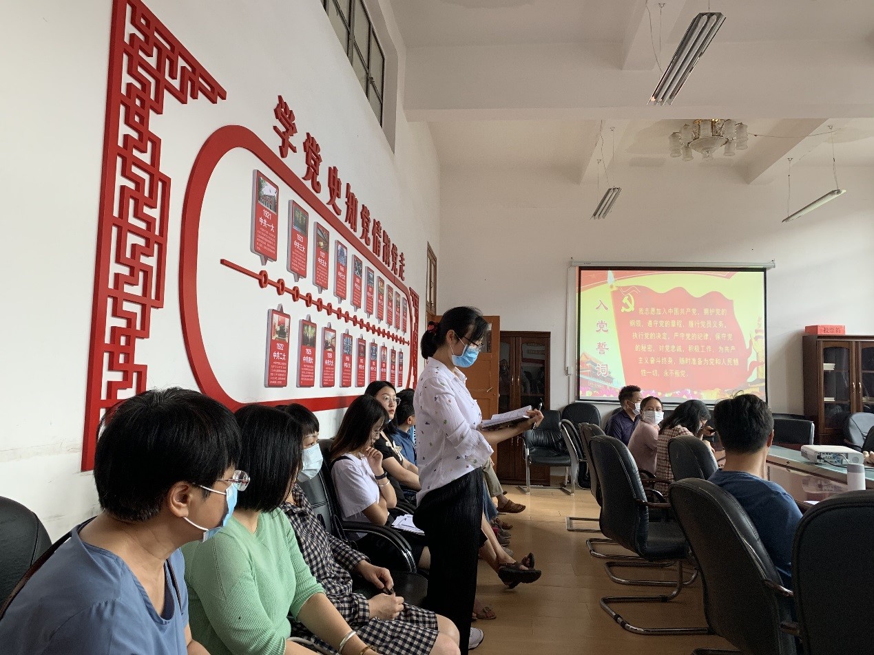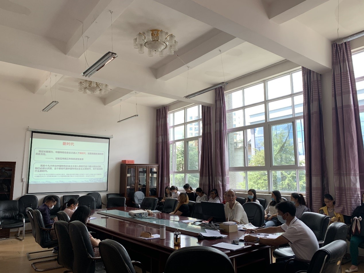 外国语学院党委书记郭跃东同志向全体教工党员教授主题为“学习习近平新时代中国特色社会主义思想——守初心,担使命”党课;为李明、蔡丽红、何亚琼、郭莹四名党员庆祝政治生日;重温入党誓词。