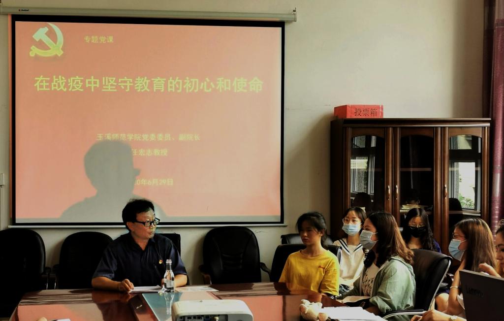 为贯彻落实党中央关于常态化疫情防控的决策部署,充分发挥高校基层党组织战斗堡垒作用和师生党员先锋模范作用, 2020年6月29日,校党委委员、副校长任宏志教授在第二教学楼503室,为外国语学院全体师生党员讲授题为《在战疫中坚守教育的初心和使命》的党课。