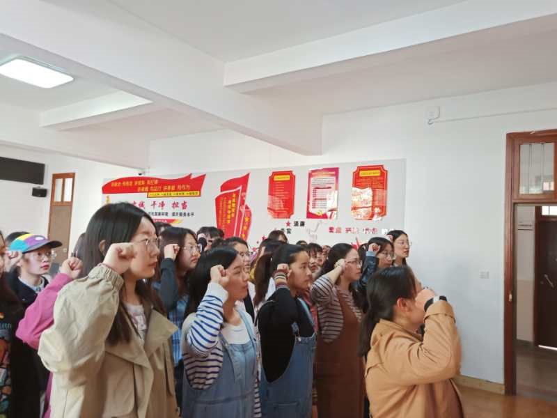 最后一个议程是集体重温入党誓词。全体师生党员在莫晓艳同志的带领下,面对党旗重新宣誓,同志们纷纷表示,这个生日过得很有意义。
