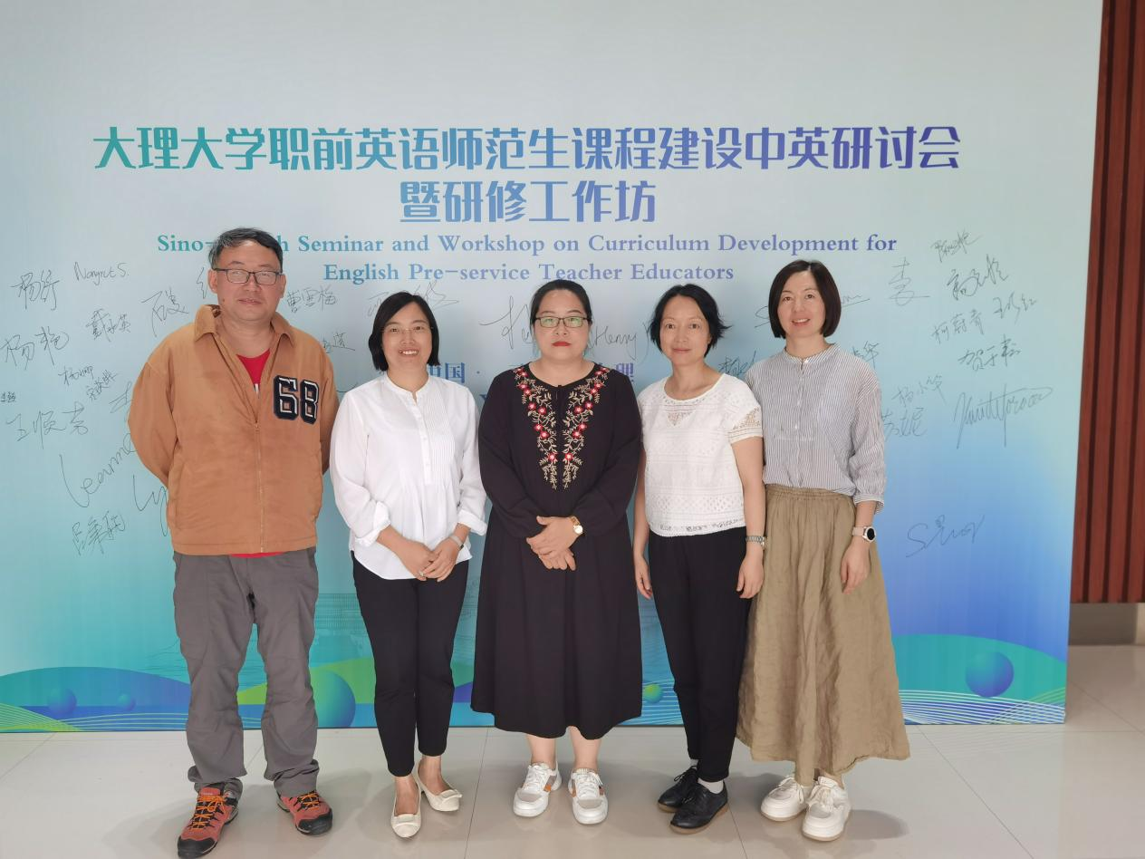 5月17日,外语学院副院长刘吉俊、英语系副系主任刘菊华、英语系专任教师刘云、郭莹、朱鹏一行5人应邀参加了由大理大学主办,英国华威大学、英国文化教育协会提供学术支持的职前英语师范生课程建设中英研讨会。