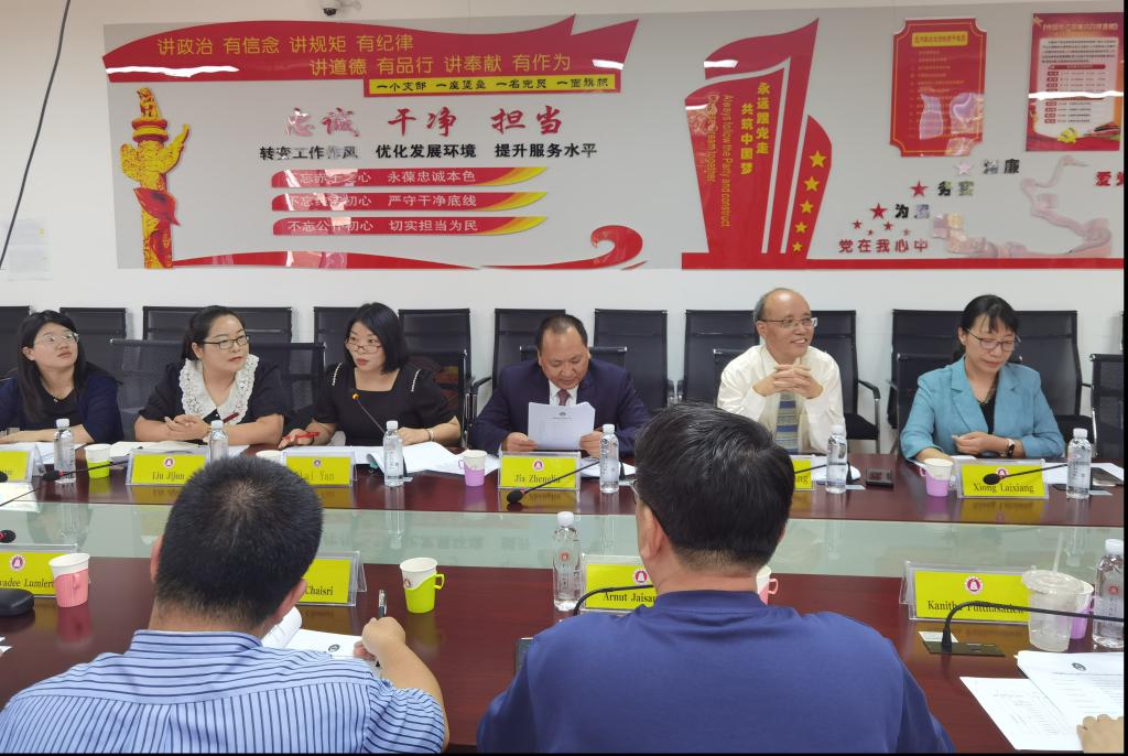 在接下来的交流中,双方分别就泰语“2+2”办学模式取得的成效、泰语外教的工作表现、下一年外教的选派、泰方学校专业课程调整、泰方近年来专业课程活动的举办情况、毕业论文、招生宣传、实习与就业等方面进行了深入的交流与探讨,会议由泰语专业教师赖艳担任翻译。