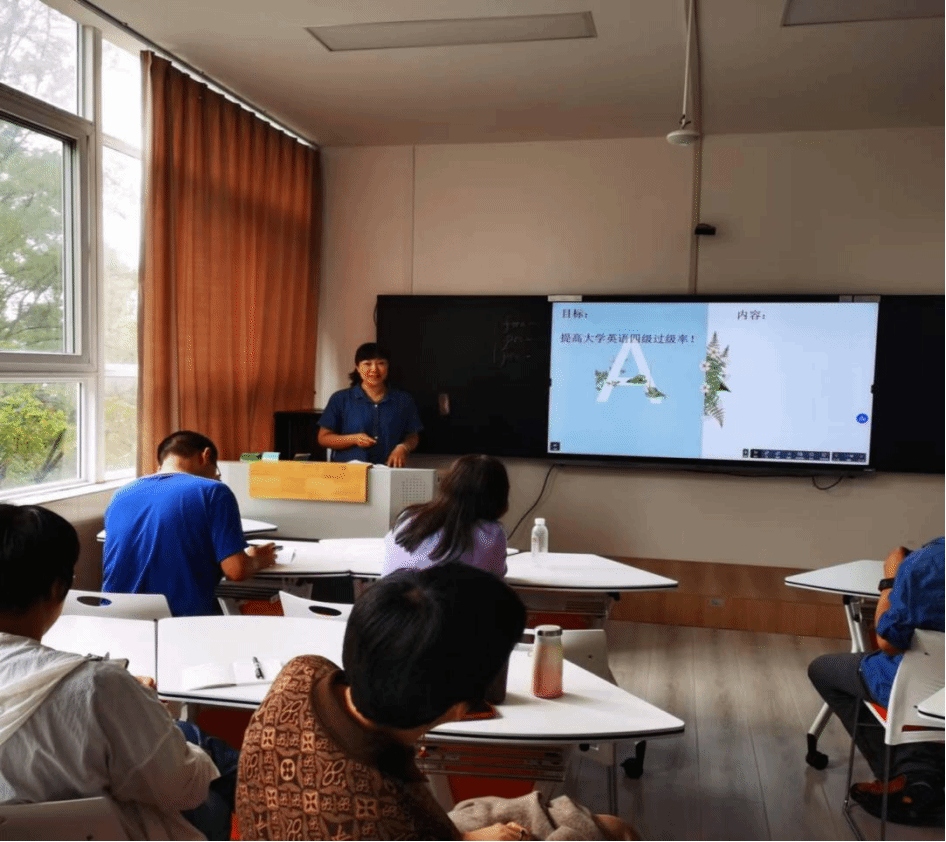 23级文科A班的杨竹芬老师认为大学英语四级考试和日常教学其实是有着紧密联系的,能够通过各种不同的措施和办法将四级考试技巧融入到日常的英语听说和读写的教学中。教师除了关注学生的英语基础学习,还应该关注学生心理健康,在必要时提供情感支持,这样才能鼓励学生们勇敢面对困难和挑战,保持积极向上的心态面对考试。让在座老师印象最为深刻的是,杨老师建议大家可以尝试和新生之间签订一份师生契约,通过让学生拟定一份具体翔实的英语学习目标,从而有效地引导学生进行自主学习。接着杨老师对自己设计的契约进行了展示,让大家受益匪浅!
