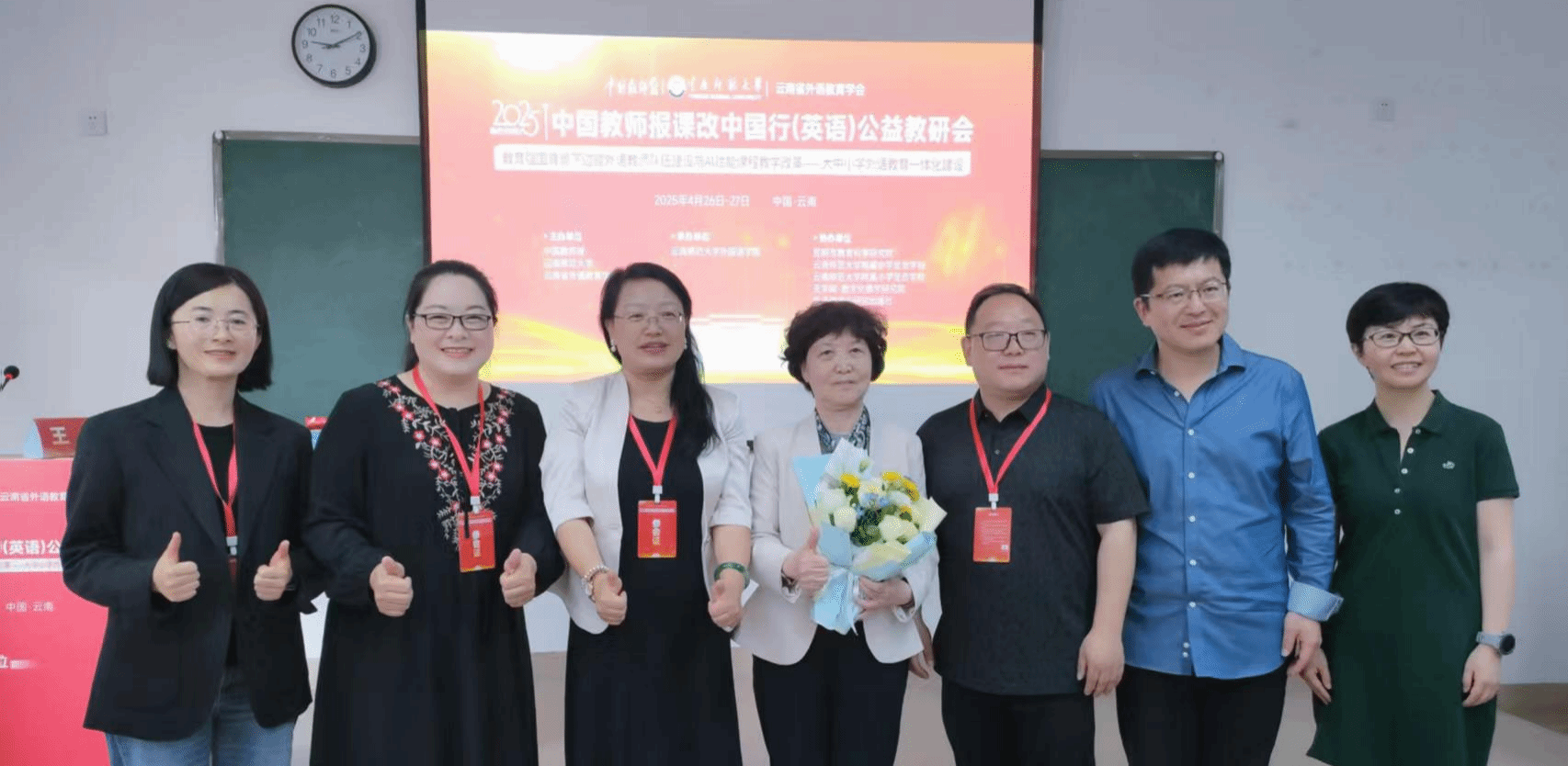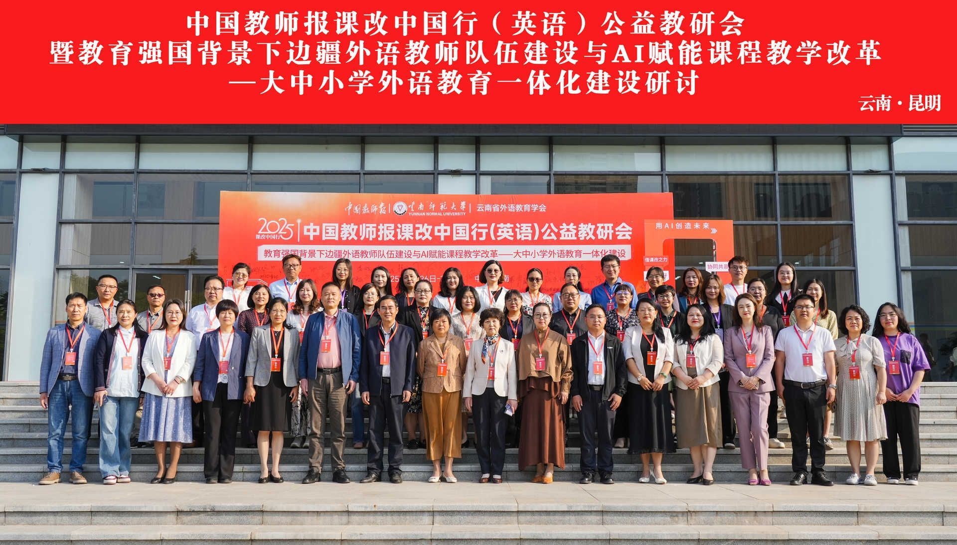 2025年4月26日至27日,由中国教师报、云南省外语教育学会与云南师范大学联合主办的 “2025 中国教师报课改中国行(英语)公益教研会” 在云南师范大学隆重举行。本次教研会以 “教育强国背景下边疆外语教师队伍建设与 AI 赋能课程教学改革 —— 大中小学外语教育一体化建设” 为主题,汇聚全国教育界专家学者、一线教师共商外语教育发展大计。玉溪师范学院外国语学院院长刘吉俊受邀率团队深度参与,通过主旨发言、主持分论坛及课改沙龙等形式,展现了学院在边疆外语教育改革中的实践成果与责任担当。