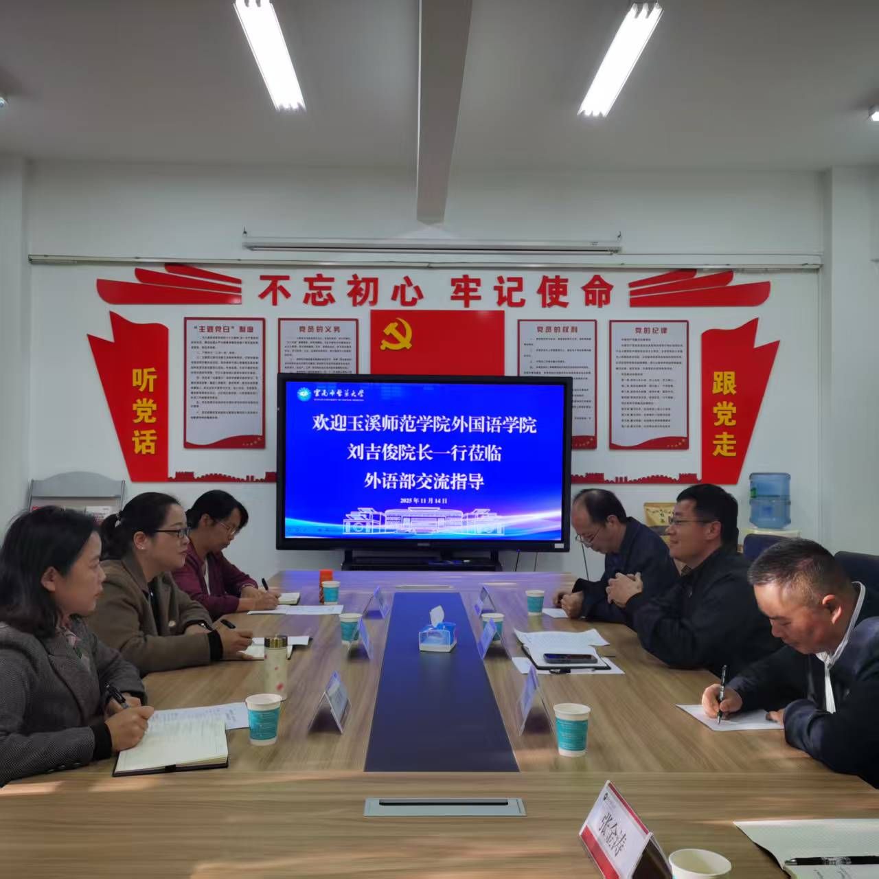 云南中医药大学教务处副处长夏永辉、外语部主任赵少钦、副主任黄兴亚、综合办公室主任张金涛对外国语学院一行的到访表示欢迎。交流会上,双方围绕大学英语教学改革的核心议题进行了广泛而深入的探讨。