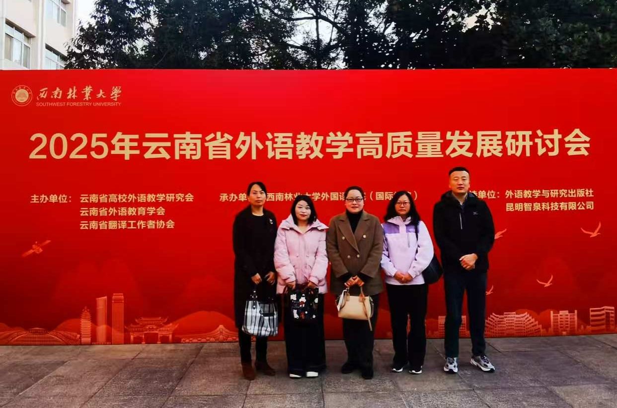 2025年11月29日,外国语学院院长刘吉俊率英语专业负责人张善富、大学外语负责人瞿海萍、泰语专业负责人赖艳及缅甸语专业负责人方玉琼一行五人,赴西南林业大学参加云南省外语教学高质量发展研讨会。
