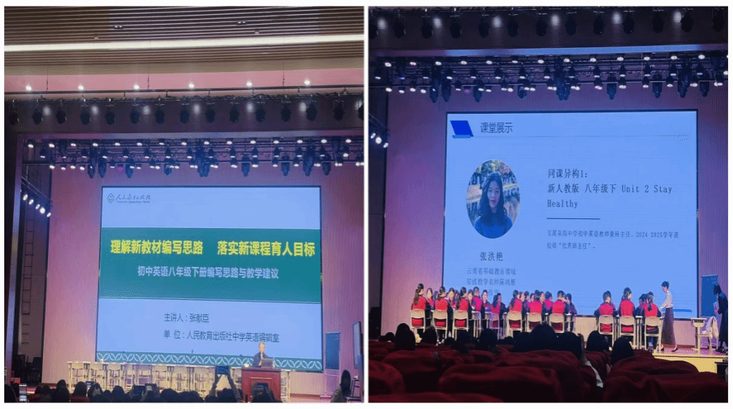 随后,李文俊老师以“新教材的读写教学——云南方案”为题作专题讲座,结合本省学情与教学实际,展示了读写教学在区域化实施中的创新路径与有效策略。张献臣编审则围绕“理解新教材编写思路,落实新课程育人目标”展开分享,结合八年级下册教材的具体内容,为一线教师提供了清晰的教学建议。此外,活动还设置了“技术驱动减负增效:AI赋能下的初中英语作业与辅导实践”案例分享环节,以会泽一中初中部为范例,展示了人工智能技术在优化作业设计、实现精准辅导方面的实际应用,引发了我院师生对教育数字化转型的深入思考。