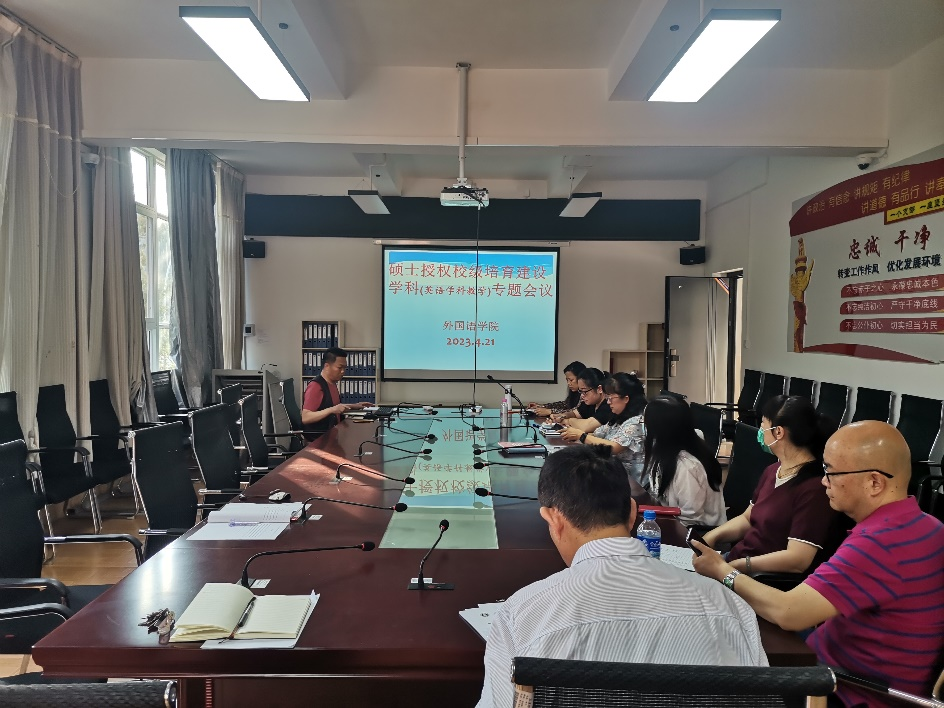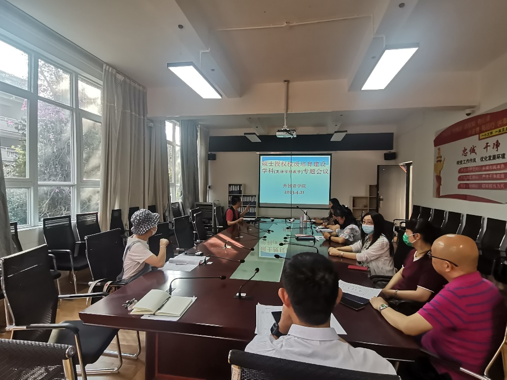 英语专业硕士授权校级培育建设学科(英语学科教学)专题会议于2023年4月21日早八点半在2教316会议室召开。此次会议由周朝润院长主持,参会人员为英语专业骨干教师团队成员。