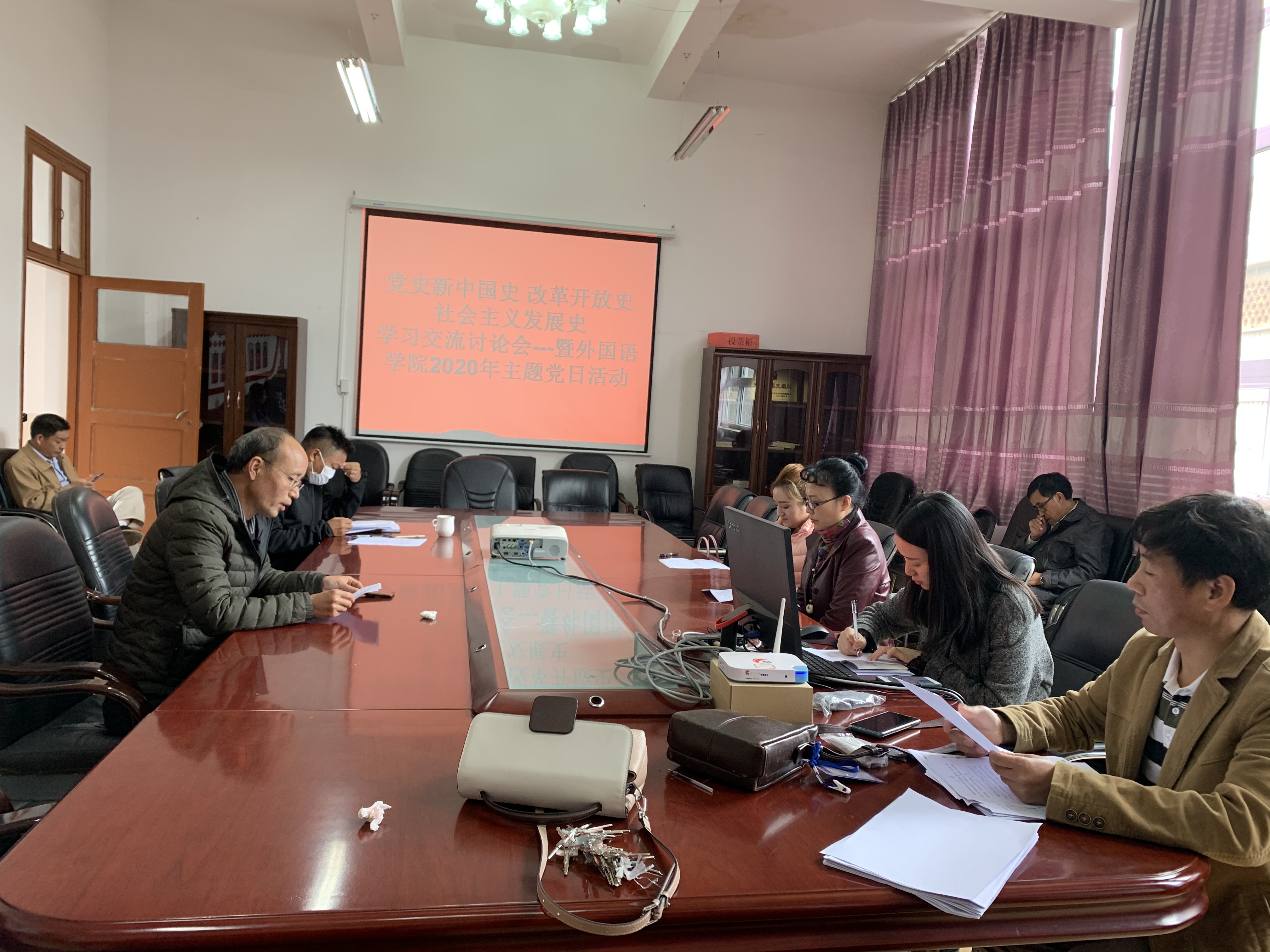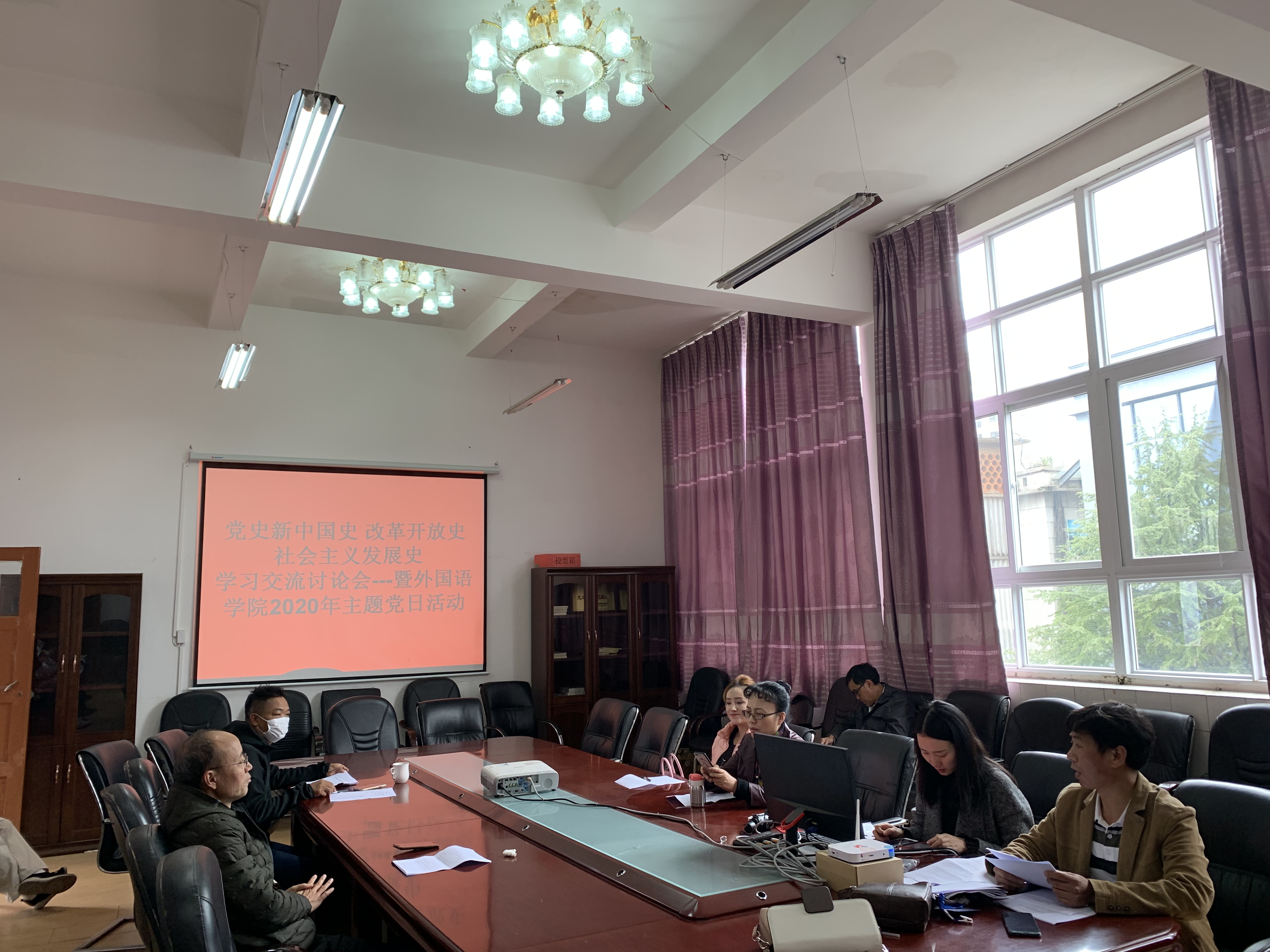 2020年10月20日,外国语学院教工党支部在支部书记张红云同志主持下开展十月主题党日活动,活动主题为学四史、学讲话、学精神学习交流讨论会。
