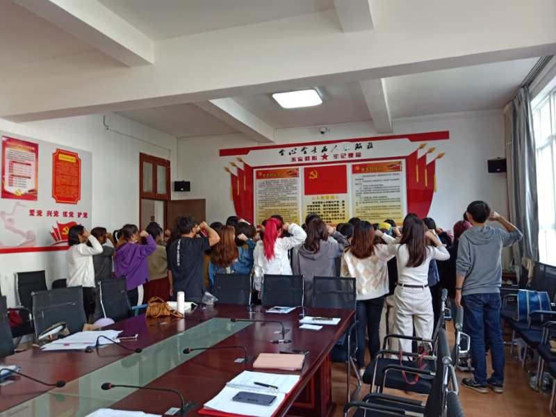 最后一个议程是集体重温入党誓词。全体师生党员在莫晓艳同志的带领下,面对党旗重新宣誓,同志们纷纷表示,这个生日过得很有意义。