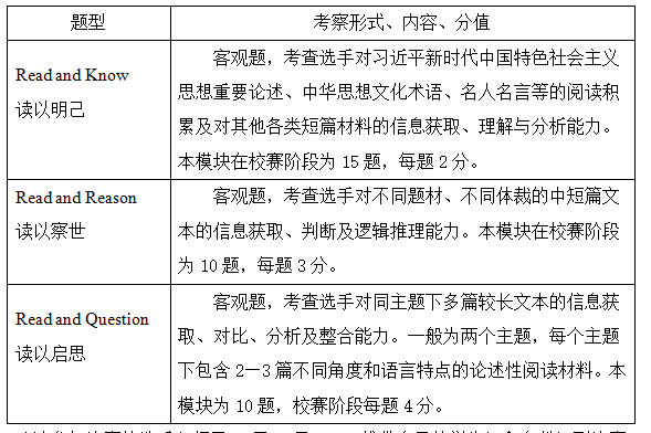 4)比赛内容:线上初赛题目包含Read and Know,Read and Reason,Read and Question三个模块。