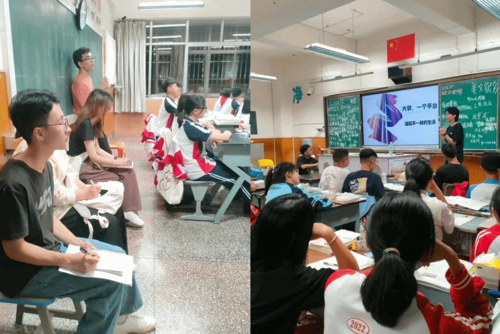 见习是师范生教育实习的重要准备,是英语师范专业学生职前教育的必要环节。见习期间,学生按照小组分配进入到高一、高二共29个班级,深入体验了一节主题为“我的未来不是梦—大学专业探索”的班会课。同学们对班级管理、班会课等各项班主任的日常工作有了更深的理解,充分认识班主任工作在学校中的重要性和相关要求。见习中,同学们仔细观察、认真做笔记,用手机录像记录的同时更用心记录,积极融入,收获满满。