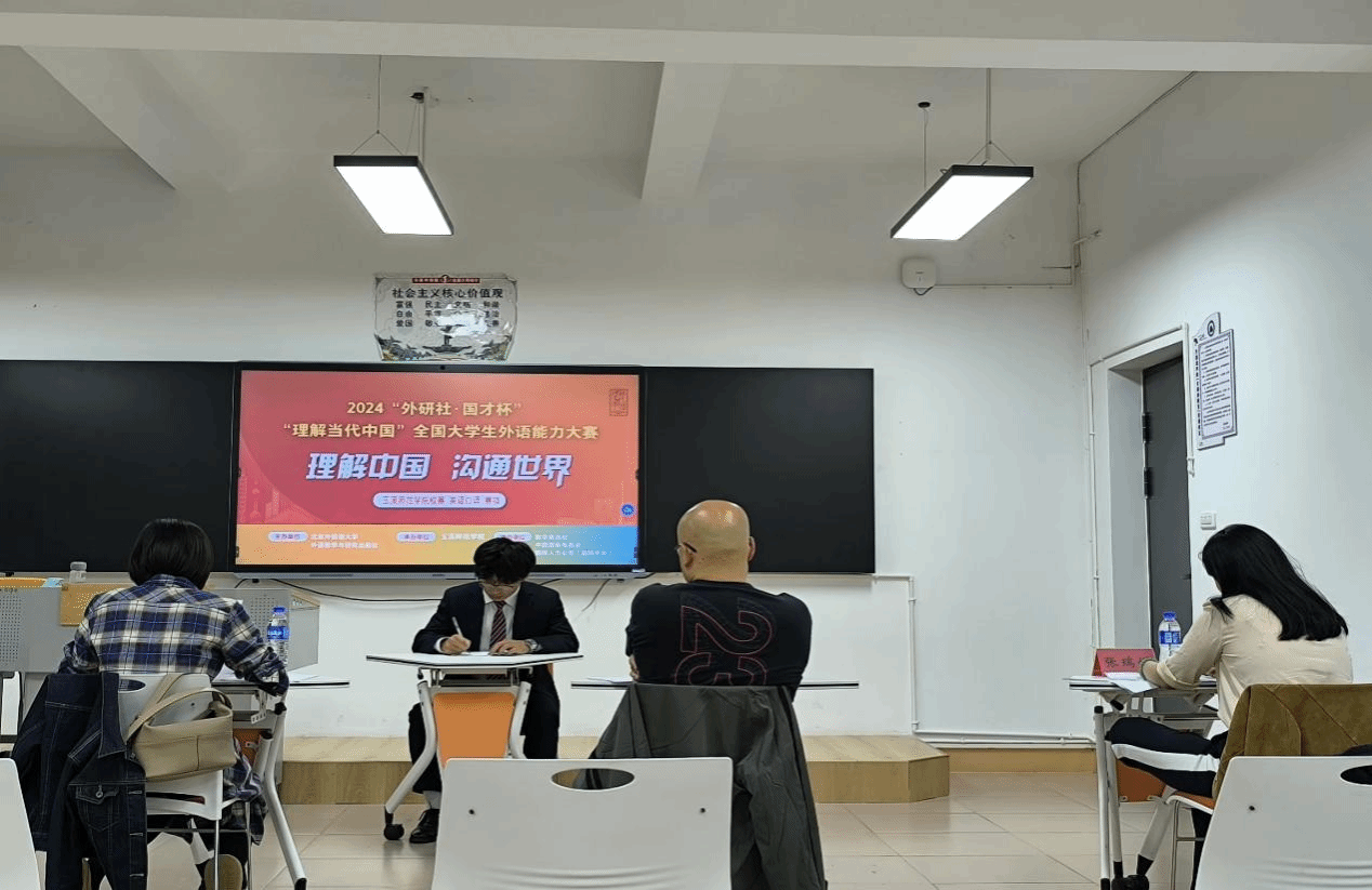 “外研社·国才杯”英语口译比赛于10月12日16:00于二教105举行,此次比赛邀请了刘菊华、陈铭、刘云、张瑞悦四位老师作为评委。在此次比赛中,参赛选手们需要在规定的时间内完成英译汉和汉译英的口译任务。口译材料从“理解当代中国”出发,涵盖了经济、政治、文化、社会、生态等多元话题,选手们在赛场上沉着冷静,认真听题并做笔记,随后根据自己的理解,熟练地运用翻译技巧进行翻译,展示出了良好的临场反应能力和扎实的语言功底。他们的口译表达流畅自然,语音语调准确,获得了评委的高度认可。同时,各个评委老师根据选手们在比赛中的表现做出精准点评并提供宝贵建议,希望各位热爱英语的学子在未来实践中继续提升自己的外语能力和综合素质。