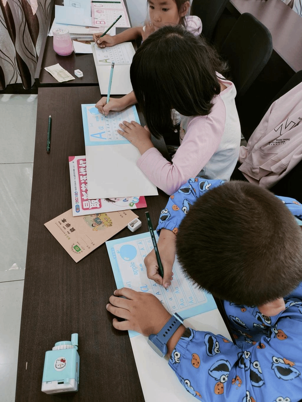 对于低年级的留守儿童采取教授儿歌和简单英语入门书写为主的辅导课程,重在增加课程的趣味性和多样性,教授简单的英语知识和口语,鼓励孩子们动口和动手。
