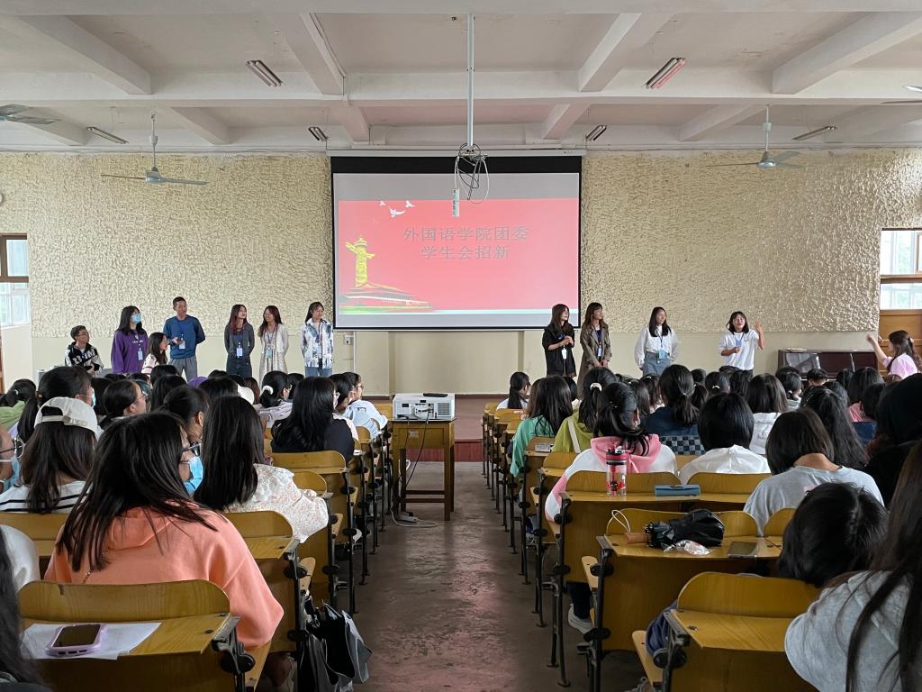 新学期来临之际,为招募一批踏实能干的团委学生会新成员,培养和壮大学生会干部队伍,2022年9月11日上午9:00外国语学院于二教501开展招新工作。本次招新工作参与人员包括外国语学院团委学生会全体成员及学院2022级新生。