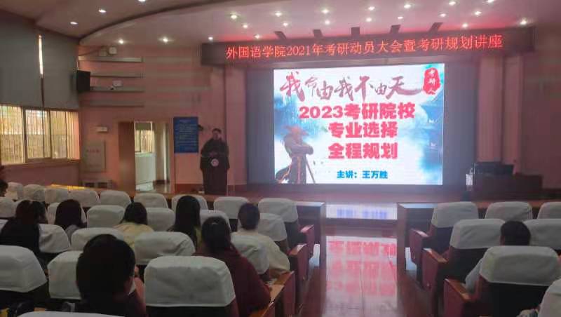 为帮助考研学生明晰考研形式、把握备考节奏,外国语学院于12月17日16:00在科学讲堂开展考研动员大会。本次大会特邀橙啦教育玉溪分校校长王万胜到场分享考研规划。我院周朝润院长莅临现场指导、动员,所有备考学生均到场。
