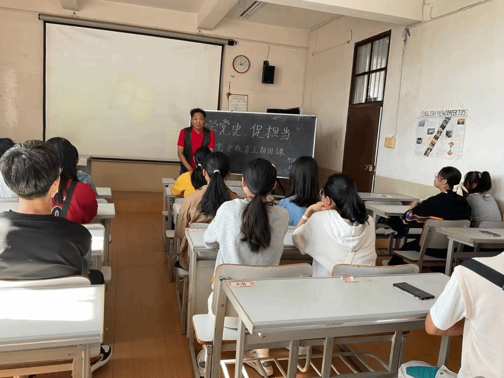 为进一步加强青年学生党史学习教育,促进新时代青年担当作为,2021年11月5日下午三点整,外国语学院周朝润院长于二教307教室讲授了一堂生动的团课。外国语学院2021级英语2班全体同学均认真参与。