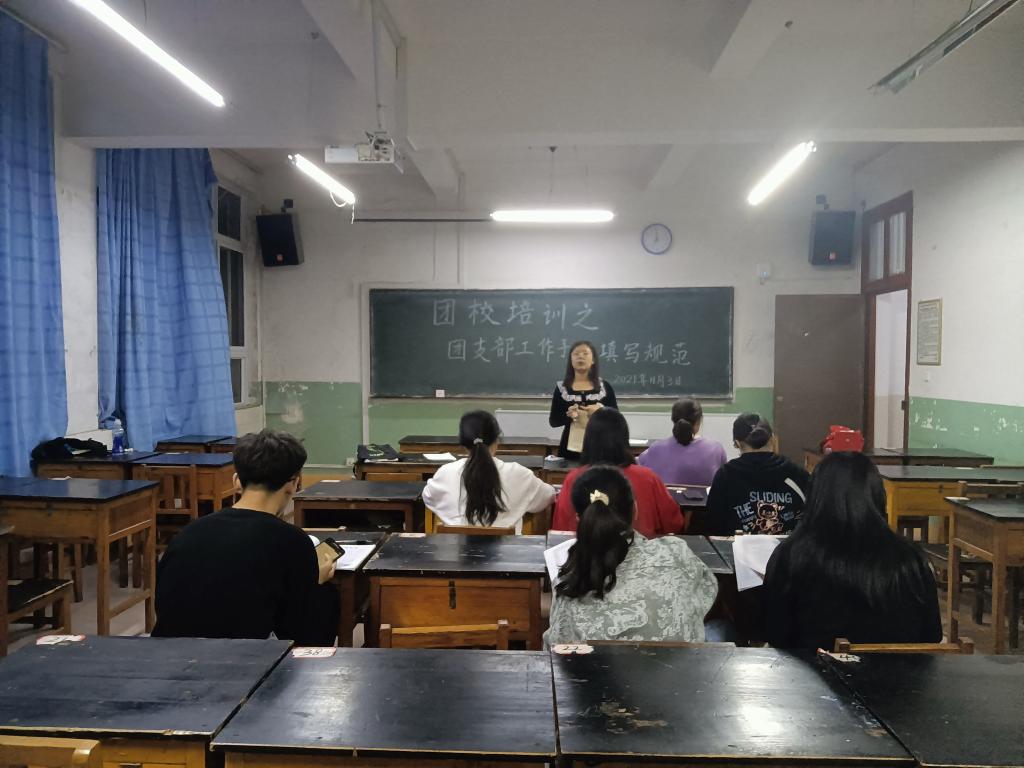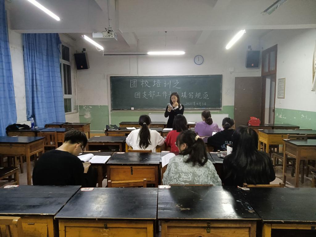 培训伊始,团委副书记杨娟向大家介绍团支部工作手册的基本内容以及发展新团员、推荐学生代表等工作任务。接着,团委副书记杨娟就团日活动、团课、团组织生活会等分类及其填写方法为各班团支书进行细节讲解,为大家规范填写工作手册指明了方向。最后,各班团支书积极提问,团委副书记杨娟对你各个问题都进行了认真细心地回答与讲解。
