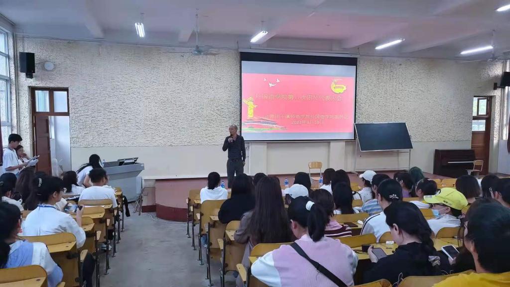 2021年3月19日外国语学院于二教501室召开第八届团员代表大会。本次大会外国语学院党委书记郭跃东、院长朱黎勇、团委书记谢春丽、团委学生会全体成员及各班团员代表均按时到场。