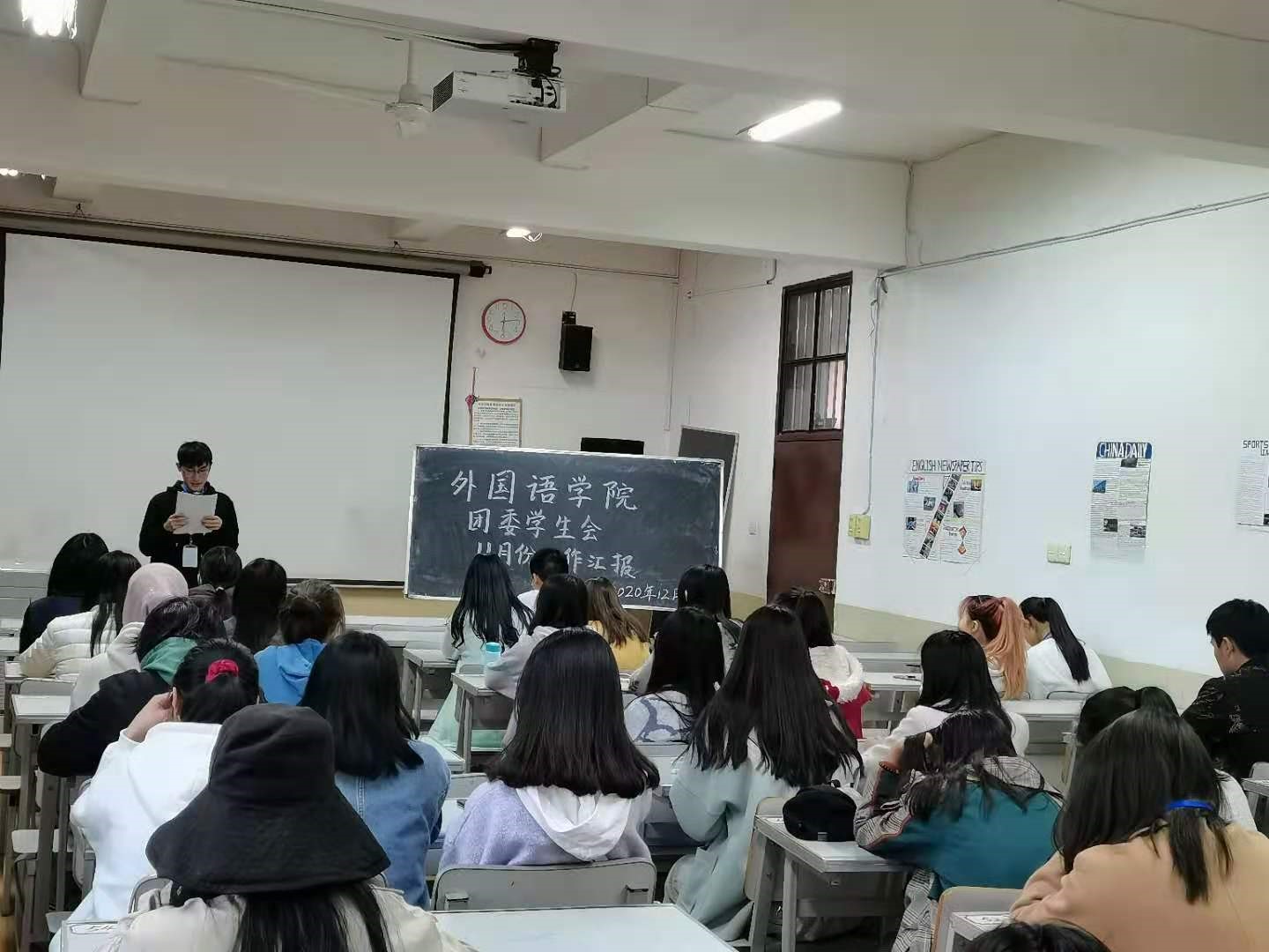 2020年12月8日,外国语学院在二教306教室进行了团委学生会11月工作汇报,此次会议由外院团委学生会全体成员参加。