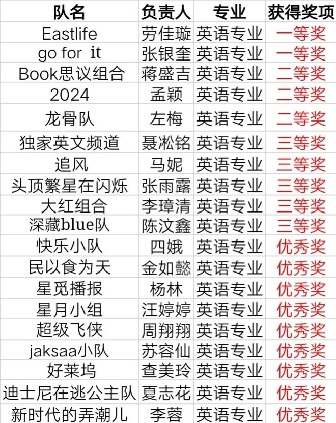 经过激烈的角逐,最终评选出了一等奖、二等奖和三等奖。获奖选手们纷纷表示,这次比赛不仅让他们收获了宝贵的经验和知识,更让他们认识到了自己的不足和需要努力的方向。他们将以此次比赛为契机,继续努力提升自己的外语水平和综合素质。