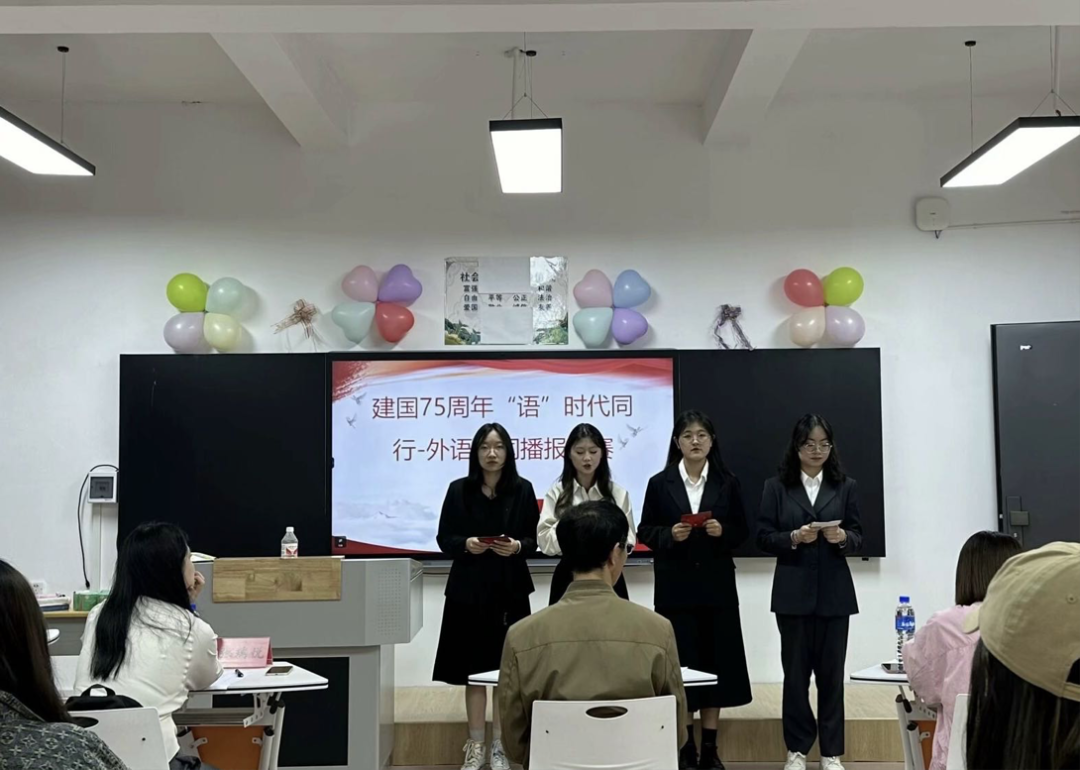 为庆祝中华人民共和国成立75周年,激发同学学习外语的热情,近日,玉溪师范学院外国语学院在二教举办“语”时代同行——外语新闻播报大赛。本次大赛旨在提升同学们的外语应用能力,培养新闻播报素养,同时也为广大外语爱好者提供一个展示才华的舞台。