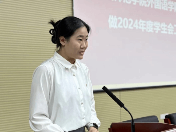 最后,玉溪师范学院外国语学院第十一届学生会干部代表沈玉婷上台发言。发言结束后,学生会秘书长马继彬现场寄语新一届学生会,希望新一届团学干部在党委、团委引领下,坚守服务团结同学宗旨,充分发挥桥梁纽带作用,为同学成长与学院发展注入青春动能。