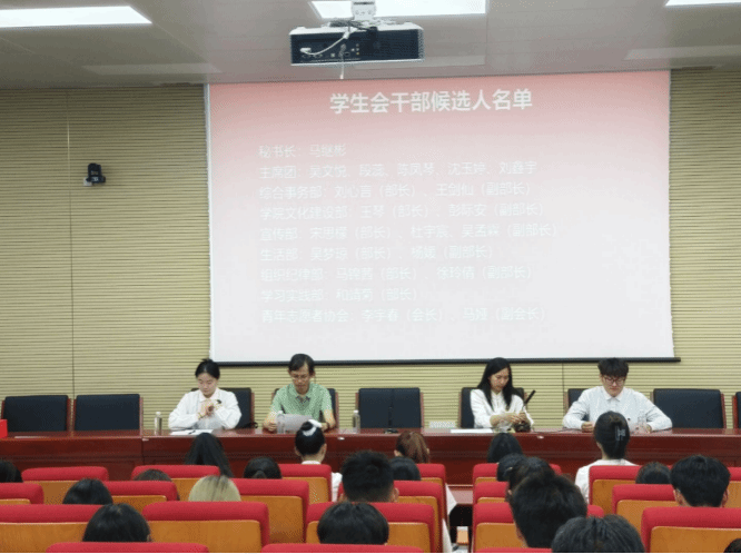 紧接着,在候选人公示环节,公布第十一届学生会干部候选人名单。该名单由各班级、团支部推荐,经学院团委结合工作实际审查,并报学院党委同意后提名确定。