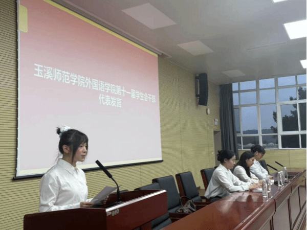 玉溪师范学院外国语学院第十一届团员代表大会暨学生代表大会圆满落幕。新一届的学生干部将在未来的学习和工作中勇担责任,团结协作,务实创新,不断为外国语学院注入新活力。