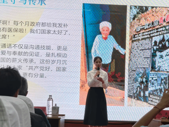 2025年9月19日,玉溪师范学院在科学讲堂成功举办2025年“国歌嘹亮红土地”行走的思政课——暑期社会实践成果汇报分享会。外国语学院团队作为代表之一,在会上精要分享了赴边境村寨开展普通话推广活动的实践成果与深刻体会。